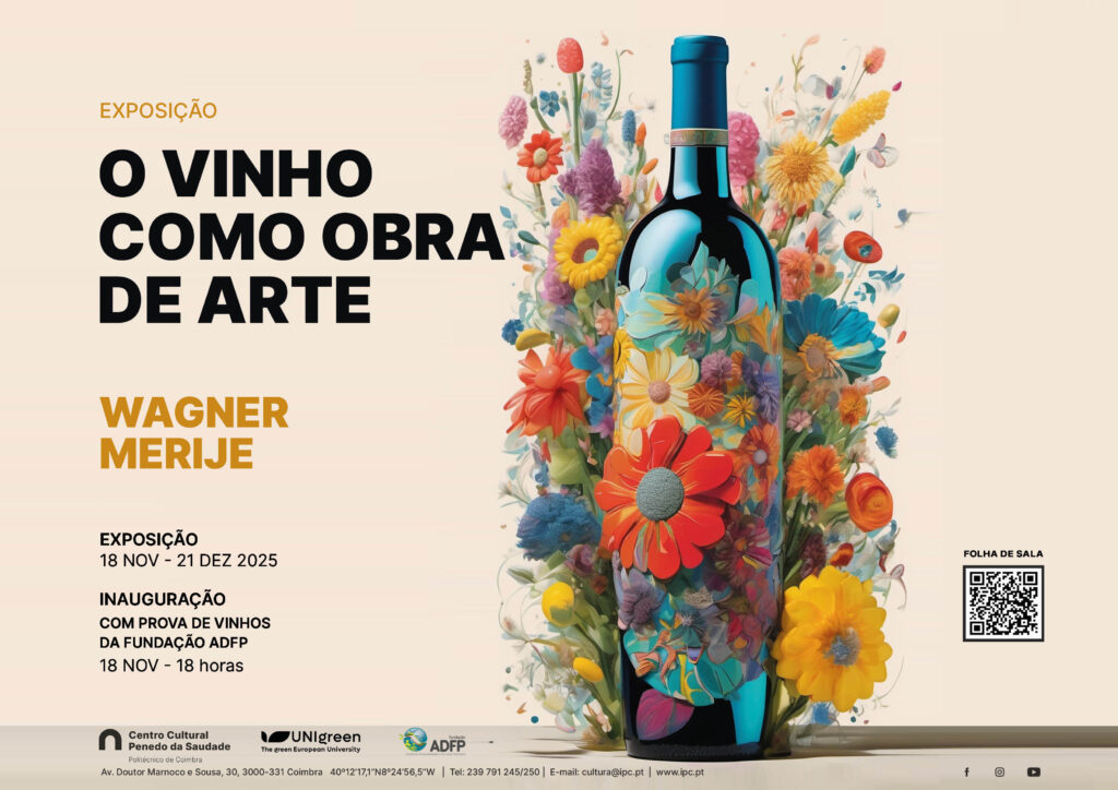 A exposição “O Vinho como Obra de Arte”, que inaugura a 18 de novembro de 2025 no Centro Cultural Penedo da Saudade, em Coimbra, Portugal, é uma homenagem sensorial e poética ao universo vinícola. Nas obras, as garrafas de vinho deixam de ser objetos utilitários e tornam-se protagonistas visuais — esculturas pictóricas adornadas com flores monumentais, rostos enigmáticos e paisagens vibrantes que evocam mestres como Van Gogh, Picasso e David Bailly.